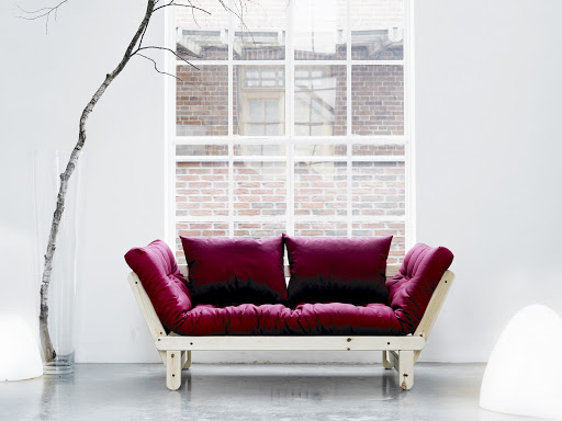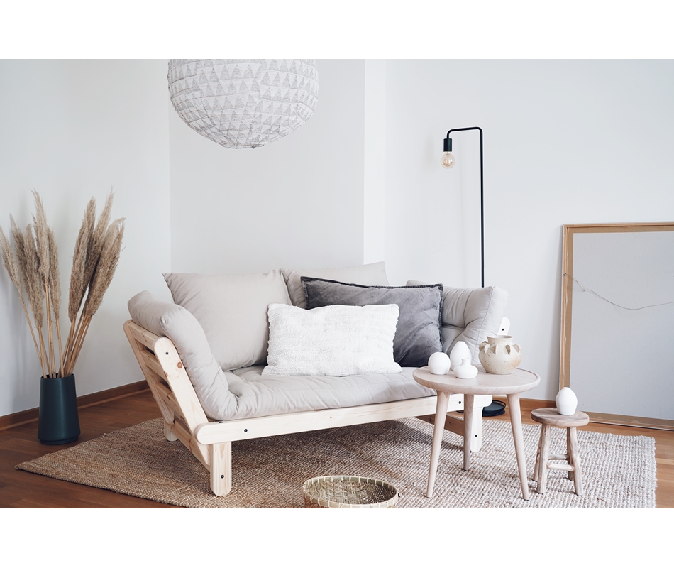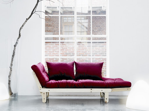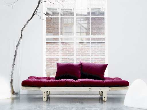 Struttura in legno prodotta da Karup, futon e cuscini Viverezen realizzati in Italia.