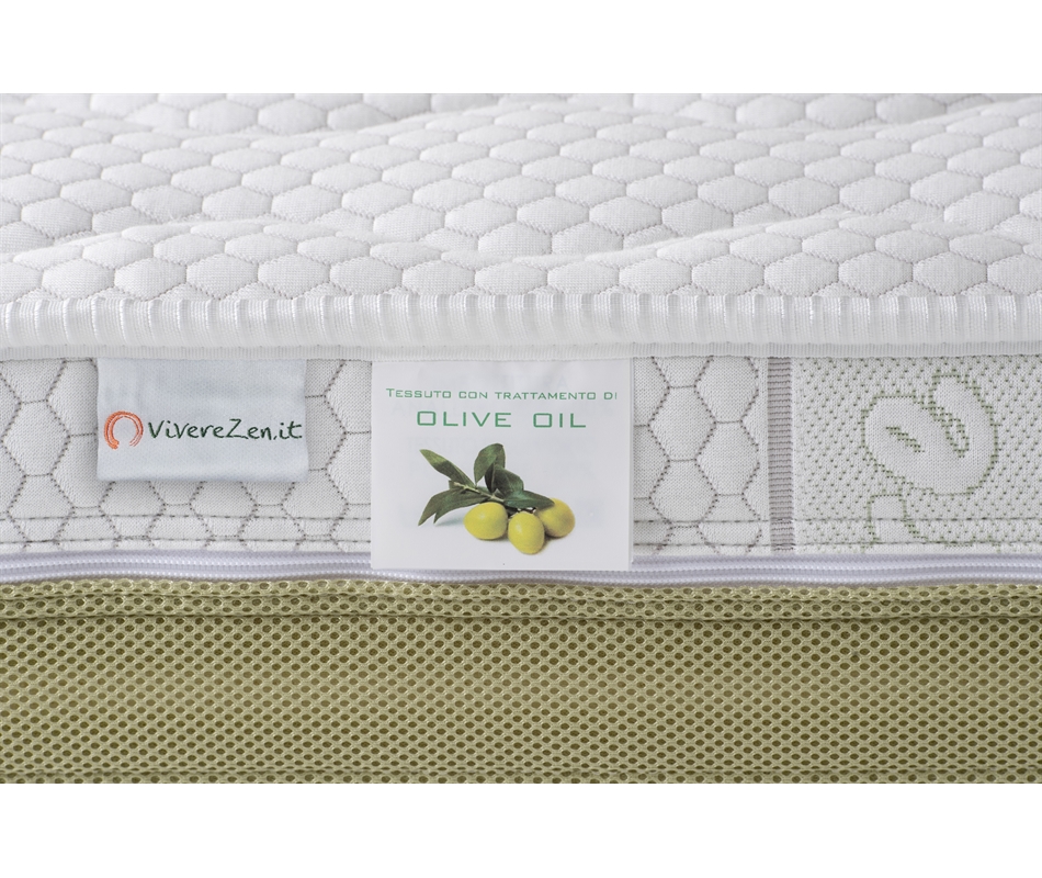 Fodera trattata in un bagno di essenza all'olio di oliva, che conferisce al tessuto proprietà antiossidanti e antibatteriche, e influisce positivamente sulla rigenerazione cellulare. Grammatura 300 gr/mq.